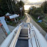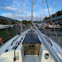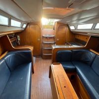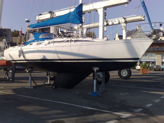 Équipement : Moteur Volvo D1-30 (28 CV – env. 400 h) Radar Furuno Sondeur couleur + GPS Furuno Pilote automatique Raymarine ST4000+ (gyro) Éolienne VHF Poste radio Étai largable Grand-voile + génois (état à vérifier) Guindeau électrique Réfrigérateur 12 V d’origine Lazy jack à refaire Capote de roof en bon état 1 batterie moteur Réservoir d’eau : 400 L Réservoir gasoil : 80 L